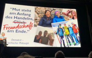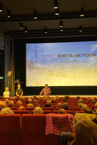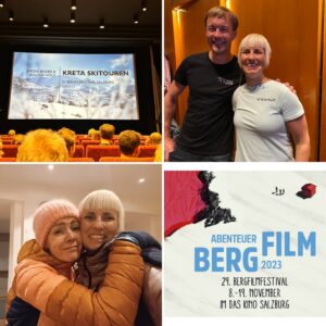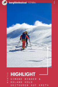 Wir haben uns wahnsinnig gefreut, als wir eingeladen wurden, einen Vortrag über Skitouren auf Kreta zu machen und dass uns das Bergfilmfestival eine Bühne bietet, unsere Geschichte zu erzählen. Eine Geschichte über Mut und viele Zufälle von ganz „normalen“ Menschen. Roli und ich sind keine Extrembergsteiger oder Rekordjäger. Was uns jedoch manchmal von anderen unterscheidet, ist unsere Leidenschaft und Mut, Neues auszuprobieren und sich auf unbekannte Abenteuer einzulassen. Wie zum Beispiel Klettern in Island oder Skitouren auf Kreta. Dass wir damit zahlreiche Interessent:innen anlocken, haben wir bei einem fast ausgebuchten Kinosaal bewiesen. Danke an alle, die dabei waren!