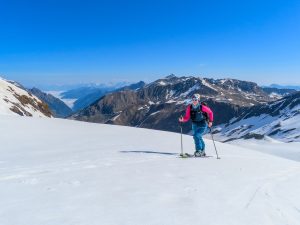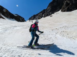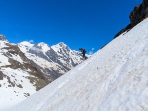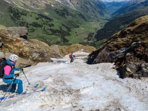 Die Erwartungshaltung war groß, genauso wie der Grinser, der auf Grund der super Firnabfahrt vom Kloben (2.938 m) über die Spielmannscharte und den Pfandlbach runter bis ins Käfertal nicht mehr aufhören wollte.
